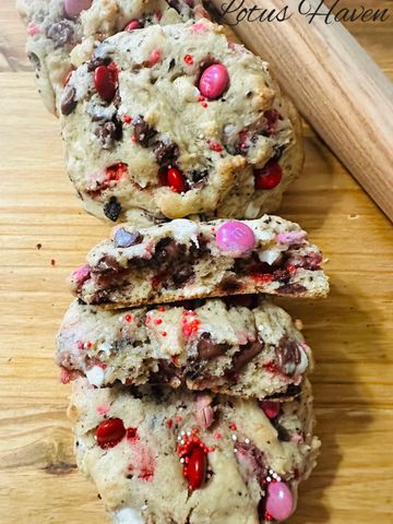 What's Inside our Bloom Cookies: Butter, heavy cream, brown sugar, sugar, eggs, vanilla, flour, salt, baking powder, baking soda, corn starch, semi sweet chocolate chips, white chocolate chips, M&M candies, Oreos, sprinkles.