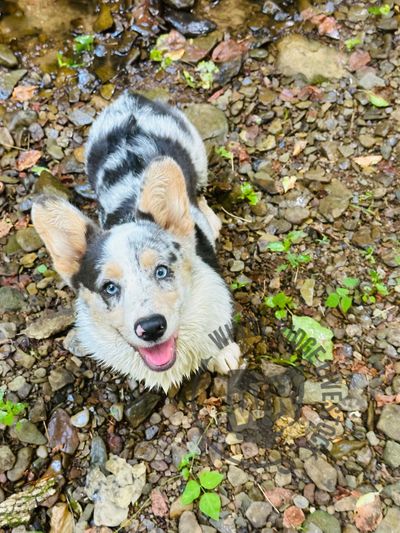 Smooch- Our beautiful home raised bluie merle American Corgi.